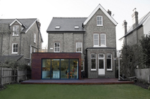 This project is situated within the Canonbury Conservation area, Islington, within the gardens of a semi-detached Victorian Villa. The timber structure, vertical strips of colored glass and timber shingle cladding again pay homage to the structure of a sycamore tree present within the garden and the differing colors of it's bark. The Victorian villa is a mass of brick with well proportionate windows puncturing its facade. The extension replicates this but through a softer scale and material. The curve displays strong contextual relationship by bringing harmony between the solidity of the Victorian villa with the softness of the garden.