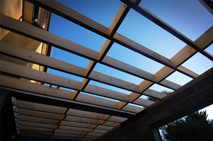 The conservatory is designed with classical elevations in a contemporary way, responding acutely to the scale of the existing property. Our aim was not to compete with the existing character of the house, instead proposing a design that was simple, light and transparent. The concept was based on an opening glass box that contains a series of screens, in a classical motif following that of an orangery, that slide in front of the glass. The screens allow for privacy and shade when closed and can be slid across, flooding the interior with light while providing access out into the garden.