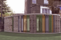 This project is situated within the Canonbury Conservation area, Islington, within the gardens of a semi-detached Victorian Villa. The timber structure, vertical strips of colored glass and timber shingle cladding again pay homage to the structure of a sycamore tree present within the garden and the differing colors of it's bark. The Victorian villa is a mass of brick with well proportionate windows puncturing its facade. The extension replicates this but through a softer scale and material. The curve displays strong contextual relationship by bringing harmony between the solidity of the Victorian villa with the softness of the garden.